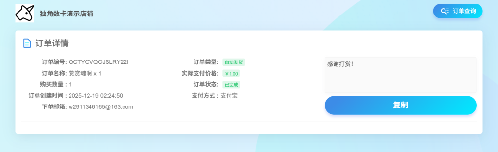 新增独角数卡搭建 网站搭建新增-独角数卡 演示网址:独角数卡演示地址 首页 商品详情 订单详情 魂啊 博主 : 购买地址:https://520.xn--gzr314n.top?cid=7&mid=132 1 1