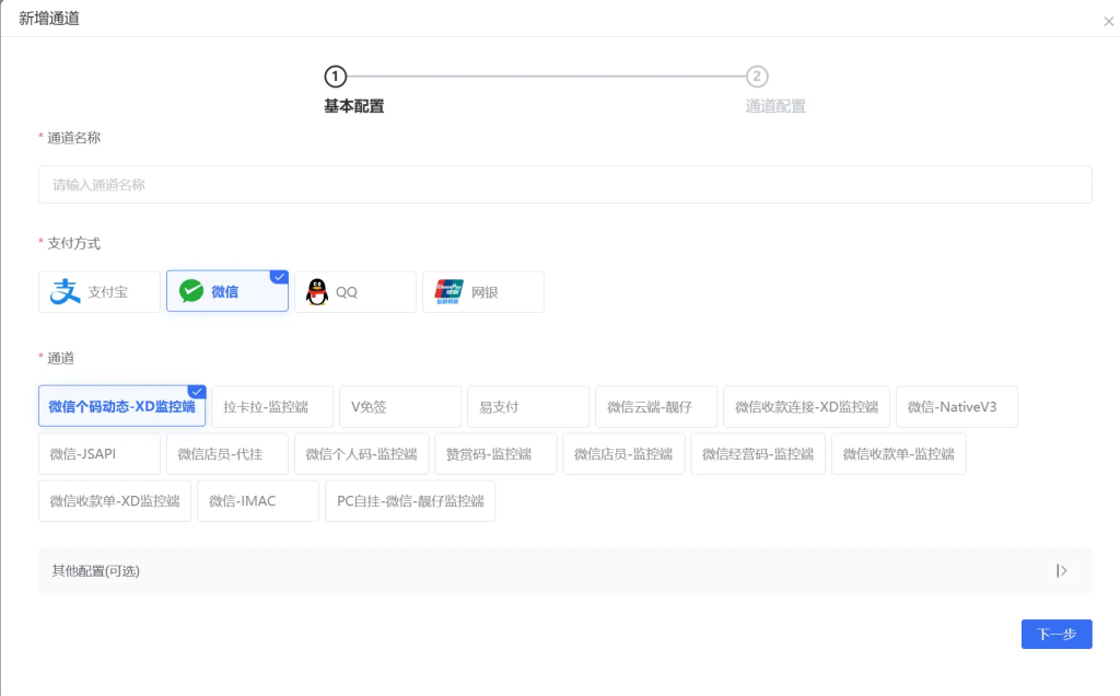 此功能在添加了多种同类型支付方式时可用(如添加了2个微信通道)
