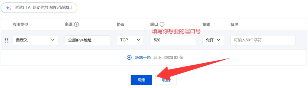 端口:填写自己需要的端口(已经放通的)