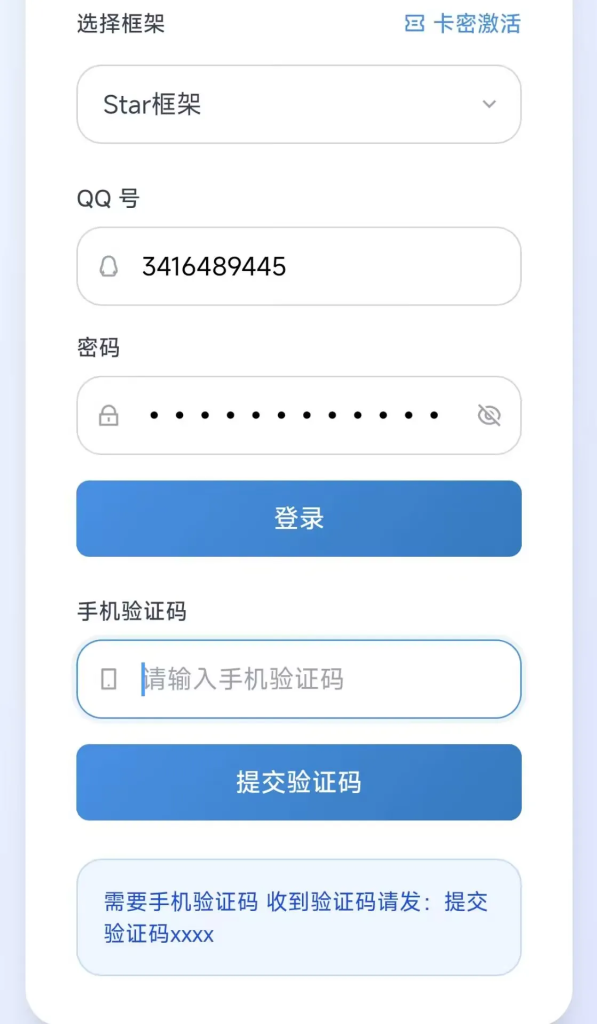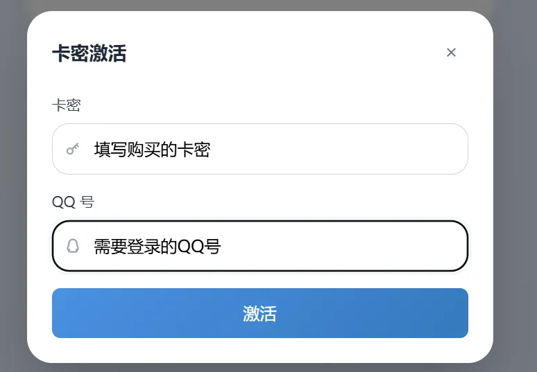 注:卡密只能授权一个QQ账号,想要登录别的账号需要再购买卡密