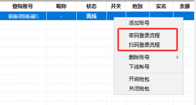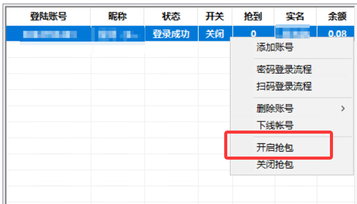 成功登录账号后,再右键开启抢包,开启后即可使用