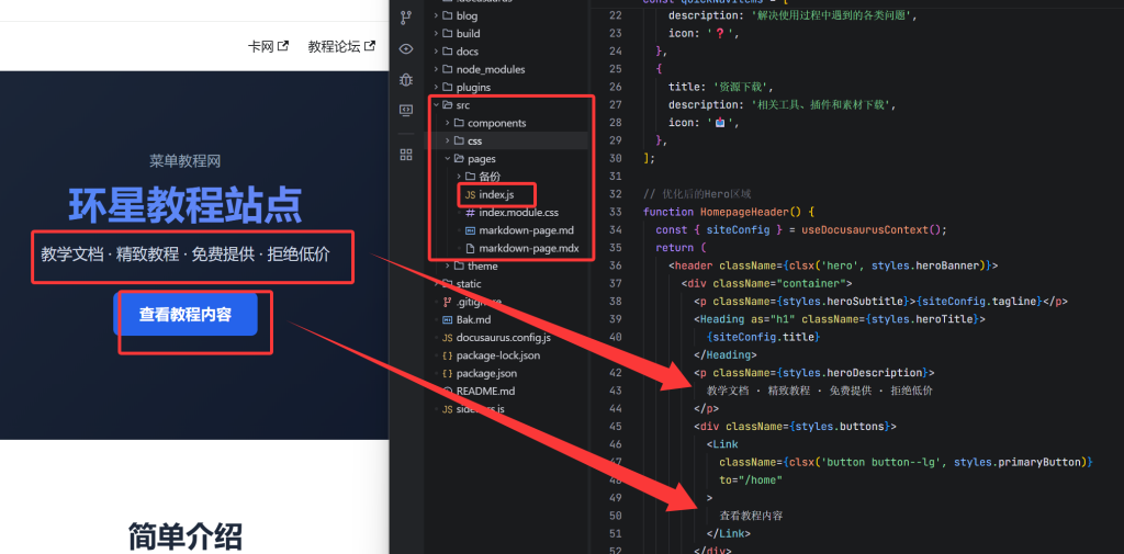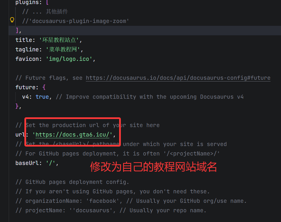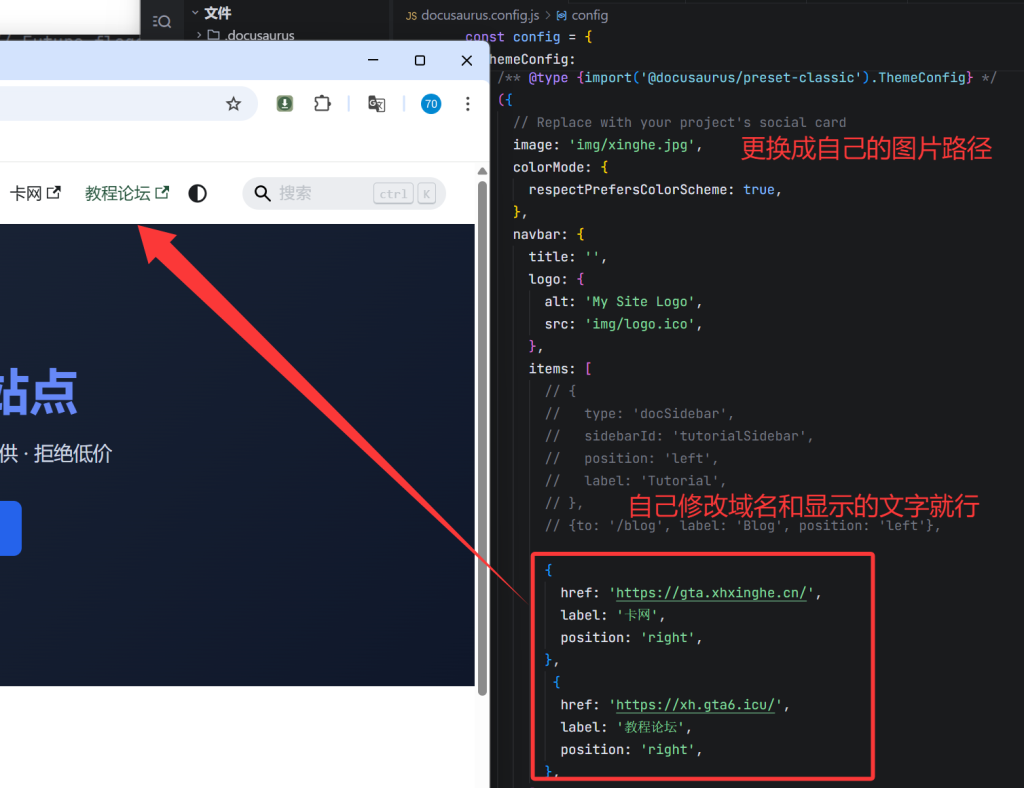 将这里的图片替换成自己的即可,并修改docusaurus.config.js里的图片路径